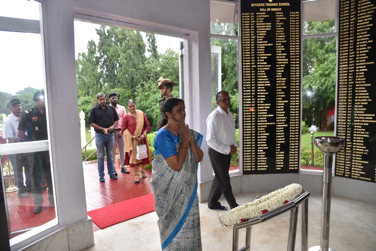 On this solemn occasion, Mrs. Shobha Sudhakar, Veer Naari, along with her brothers and family, laid a wreath at the Hut of Remembrance at OTA Chennai in honour of Captain Madhavan. She has continued this tradition since October 1988, accompanied by their son Abhishek, who was then three years old. Colonel Devanathan, Captain Madhavan's SS 25 coursemate, and his spouse were also present.