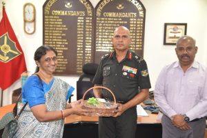 Lt Gen Michael AJ Fernandez AVSM VSM, Commandant, Officers Training Academy, Chennai later invited Mrs Shobha Sudhakar and Col Devanathan for a cup of tea at his office and honoured the Veer Naari.
